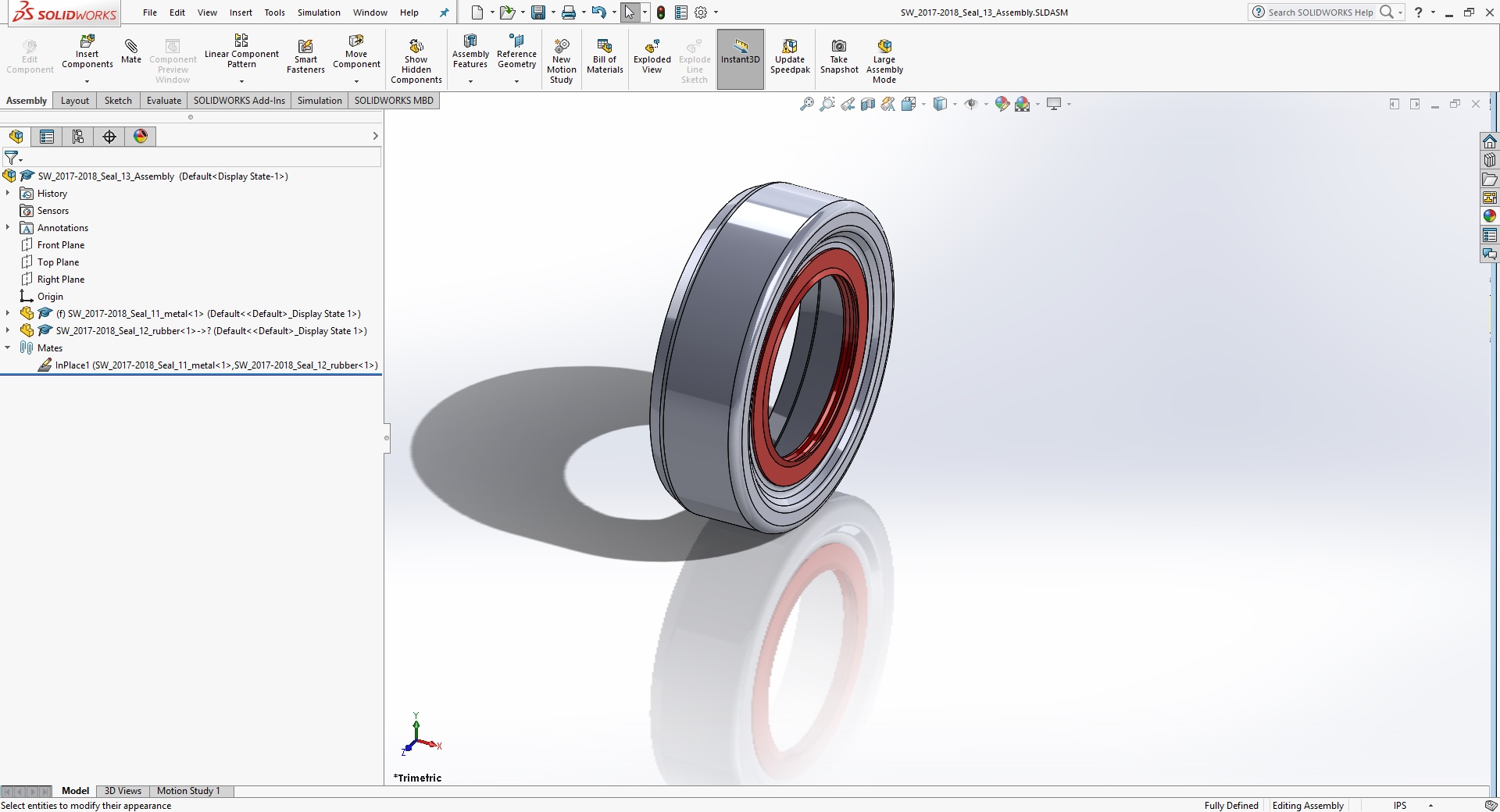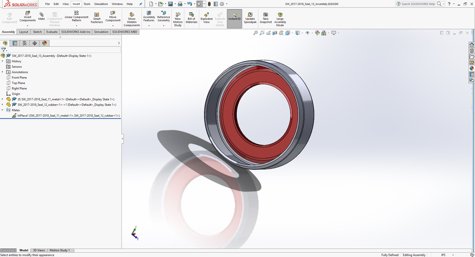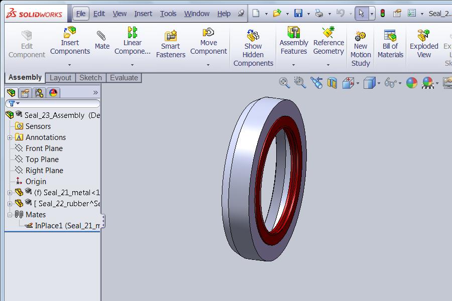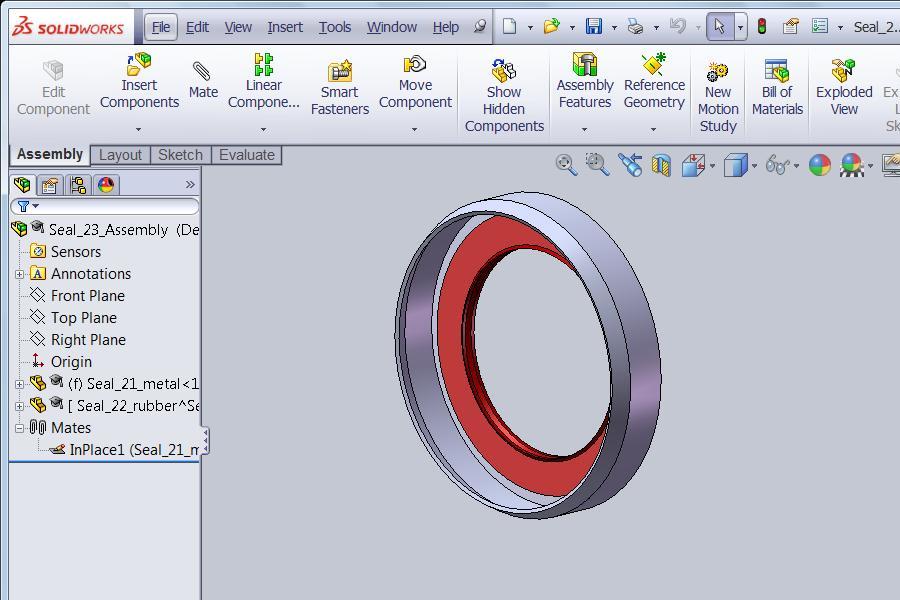 A seal drawn with Top-Down design since the reddish rubber would likely be molded to the metal, not made separately and then assembled to the metal.